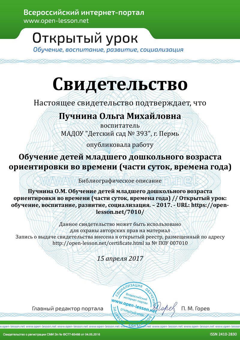 Пучнина Ольга Михайловна, воспитатель высшей квалификационной категории |