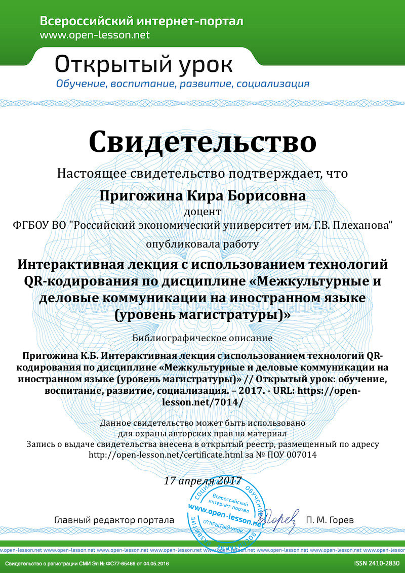 Использование технологии QR кодов реализует личностно-ориентированный подход в обучении, способствует активному вовлечению аудитории в процесс восприятия информации и последующую дискуссию, поскольку обеспечивает мгновенный и одновременный доступ к необходимым текстовым, видео и аудио ресурсам по теме.