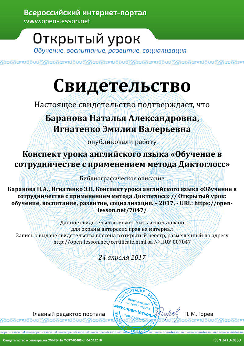 What did you do today? What did you learn? What was new for you? What was difficult for you? Is everything clear? Good of you. Let’s count the sum of pluses: 15 – 13 + mark 5 12 – 10 + mark 4 9 – 6 + mark 3 5 – 0 + mark 2 (Команда получает в итоге оценку, которая ставится всем членам команды). Your homework is to make up a short story about an amazing place according to the questions you answered. You can find them in your copybooks or in your textbooks on page 80. Thank you for your work! |