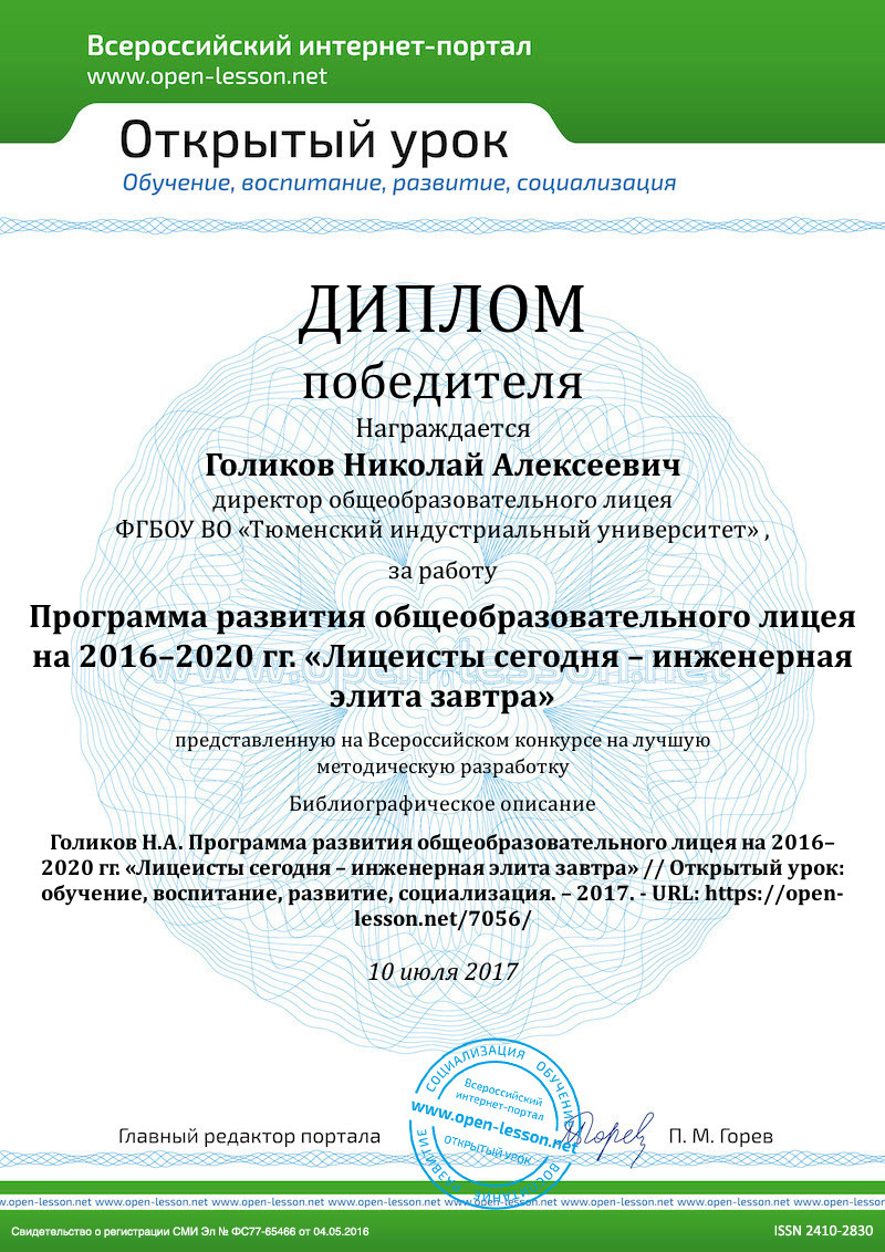 Голиков Н.А., директор общеобразовательного лицея, к.п.н., профессор