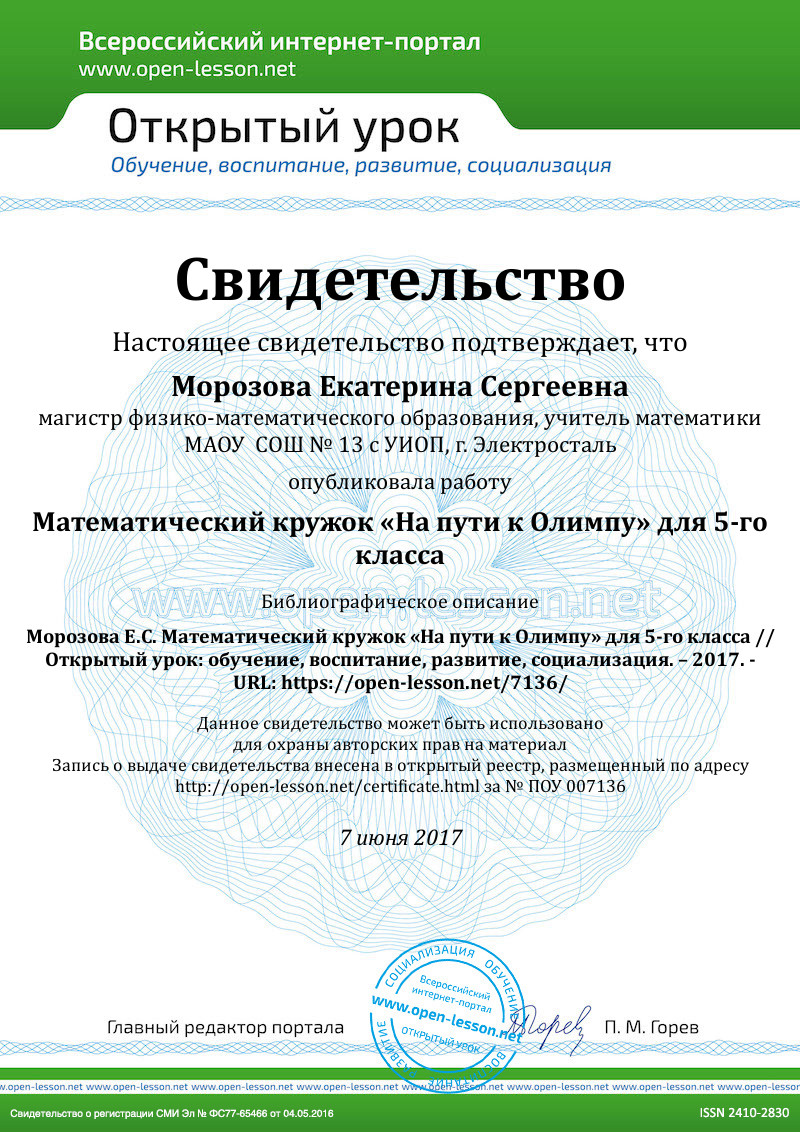 Решить эти задачи позволяет программа математического кружка «На пути к Олимпу». Кружок рассчитан на 1 час в неделю (35 часов в год).