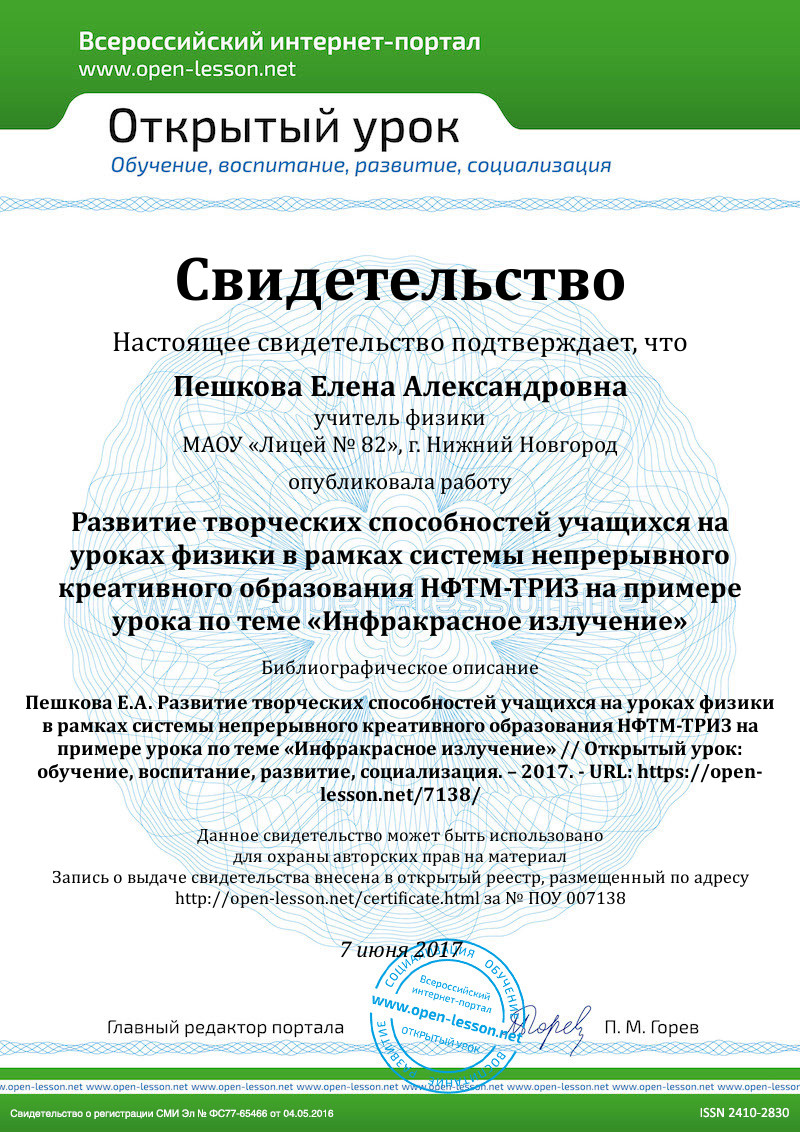 Пешкова Е. А. Эффект удивления «Инфракрасное излучение» // Межпредметный сборник педагогических приемов-эффектов «Удивление чудом» http://chudo.mcito.ru/ № ЭУС-191 – [Дата обращения: 25.05.2017]