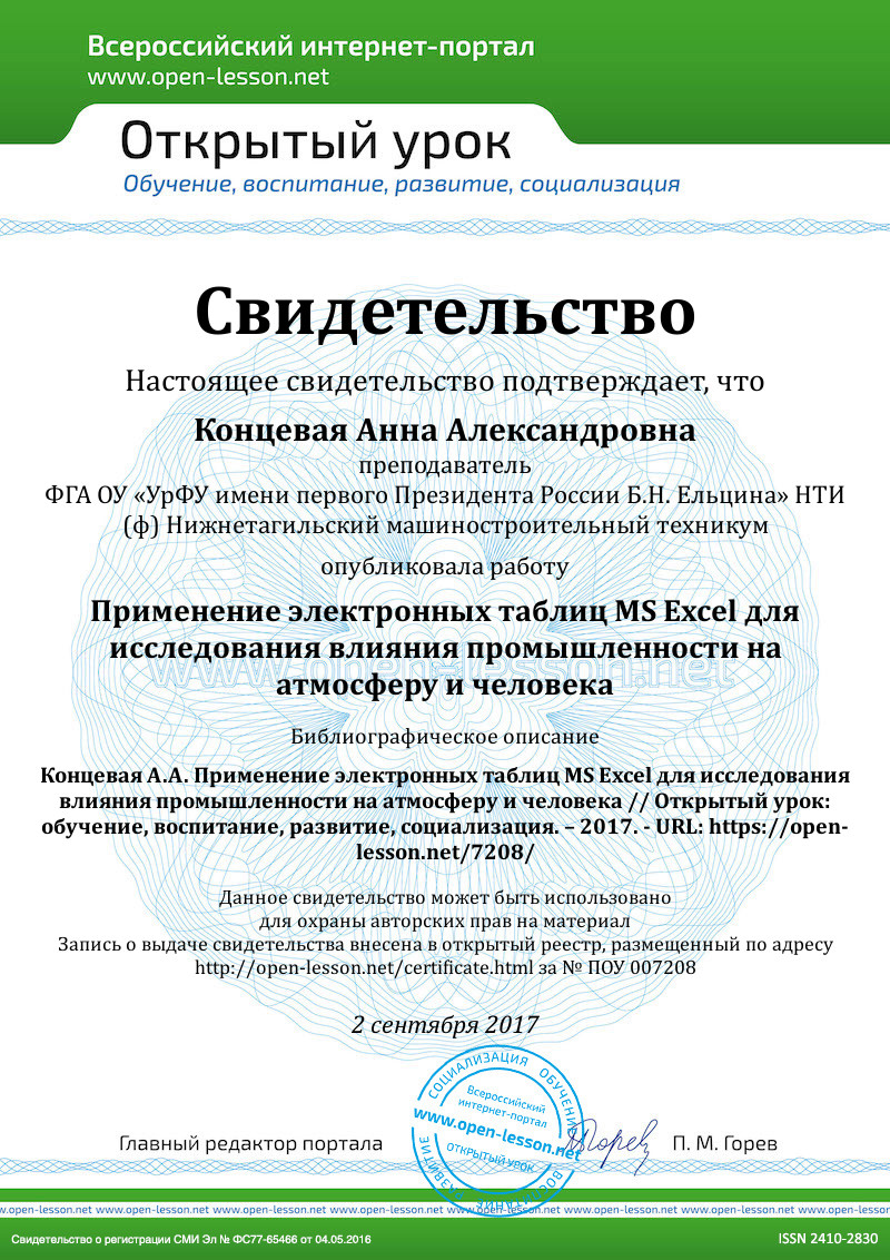 Цель занятия для студентов: сделать выводы на основании гипотезы о воздействии промышленности Нижнего Тагила на здоровье человека, используя возможности программы MS Excel.