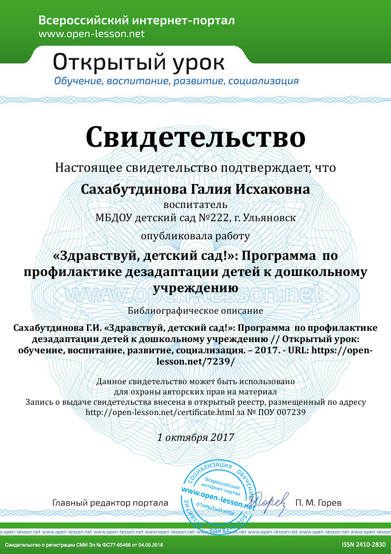 «Лист адаптации», разработанный Н.Д. Ватутиной.