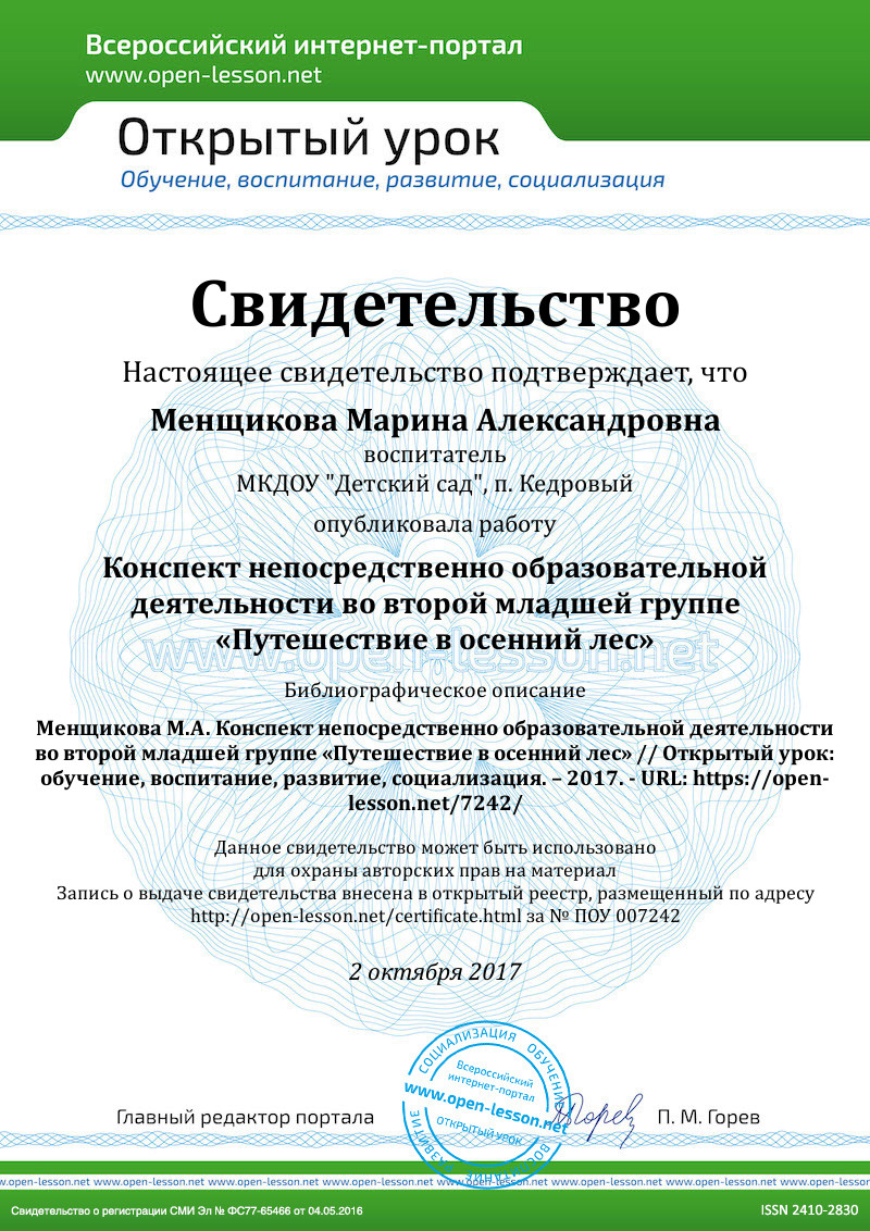 – Нам пора возвращаться в детский сад, в нашу группу. Давайте попрощаемся с лесом. Скажем: «До свидания осенний лес».