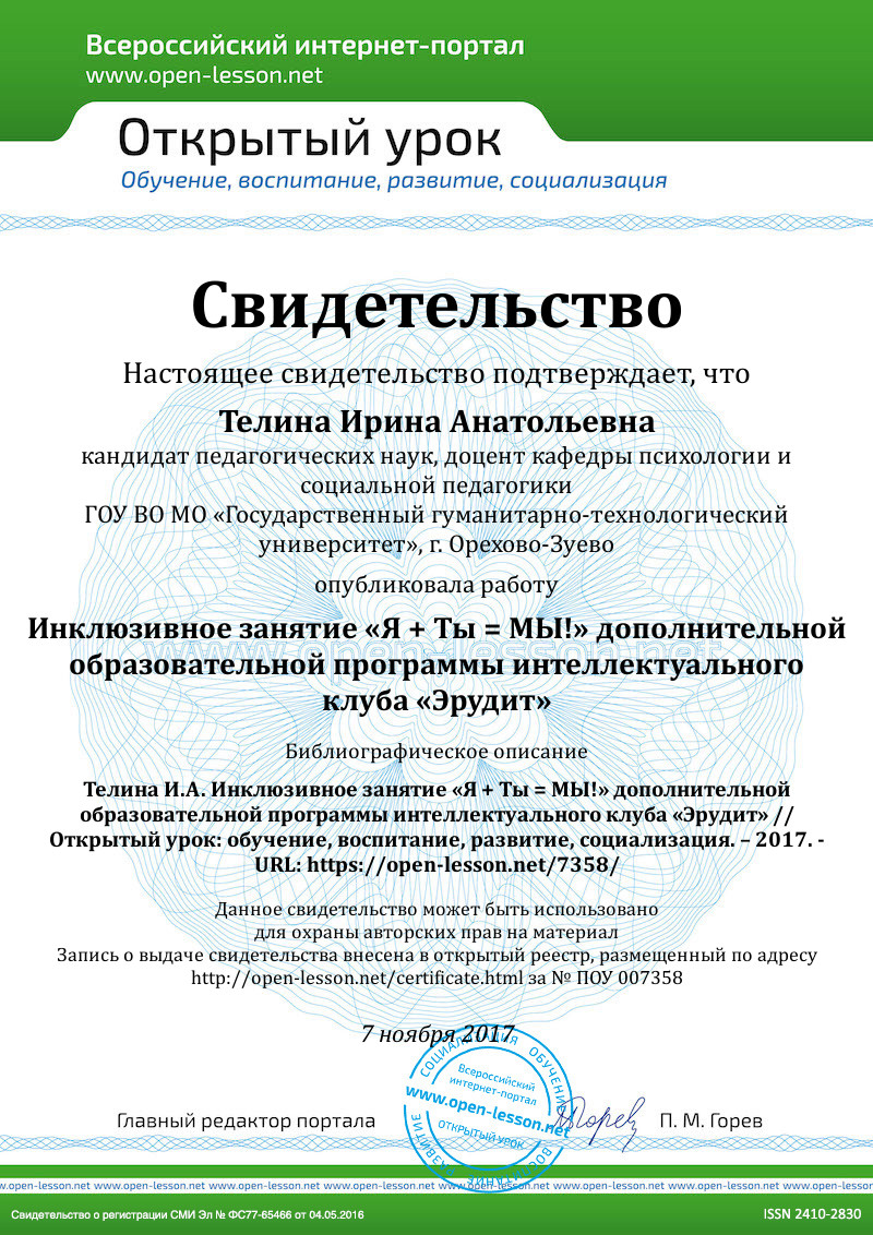 Детское объединение: интеллектуальный клуб «Эрудит» (12 человек, 1 ребенок с легкой степенью нарушения опорно-двигательного аппарата).