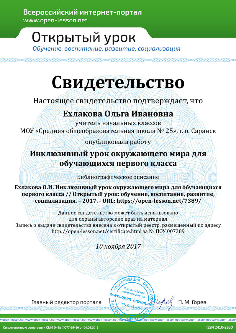 Класс: 1 (30 человек, 1 ребенок с нарушением зрения).