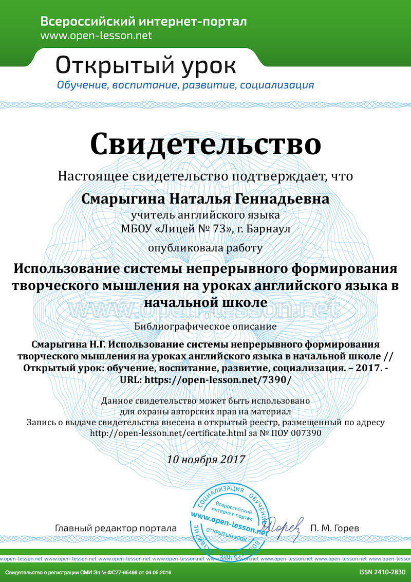 Я считаю, что основная задача учителя английского языка (да по сути и других предметов) заключается не только в том, чтобы заложить хорошую фундаментальную базу знаний, на которую ученик будет опираться далее – в среднем и высшем звене, но и (а может быть и самое главное) – не отбить у ученика «охоту» к изучению предмета, а наоборот, привить любовь и интерес к (в нашем случае) английскому языку. Новые государственные стандарты предусматривают все большую роль ученика в образовательном процессе, все больше творчества, и весь процесс обучения превращается в процесс формирования личности творческой и креативной. Но как не уйти в игру полностью и не потерять ту нить познавательного процесса, чтобы достигнуть образовательную цель?