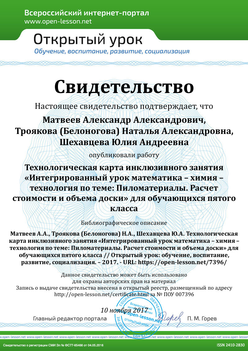 Вашему вниманию представляется технологическая карта инклюзивного занятия «Интегрированный урок математика – химия – технология по теме: Пиломатериалы. Расчет стоимости и объема доски» пятого класса.