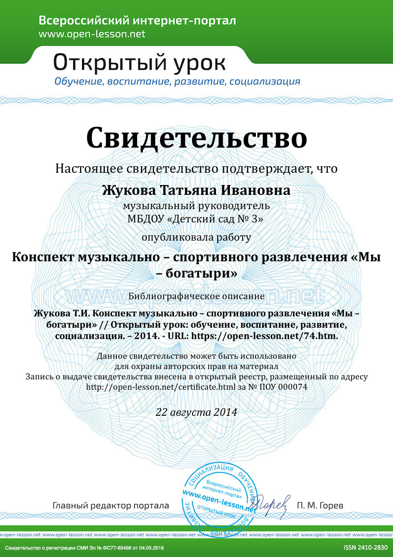 - «Музыкальный руководитель», журнал №2-2005, №2-2006, №2-2007, №2-2008.