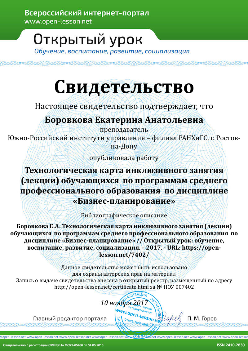 Представленная ниже технологическая карта занятия (лекции) ориентирована на обучающихся (в том числе, обучающихся с ОВЗ) по программам среднего профессионального образования по дисциплине «Бизнес-планирование».