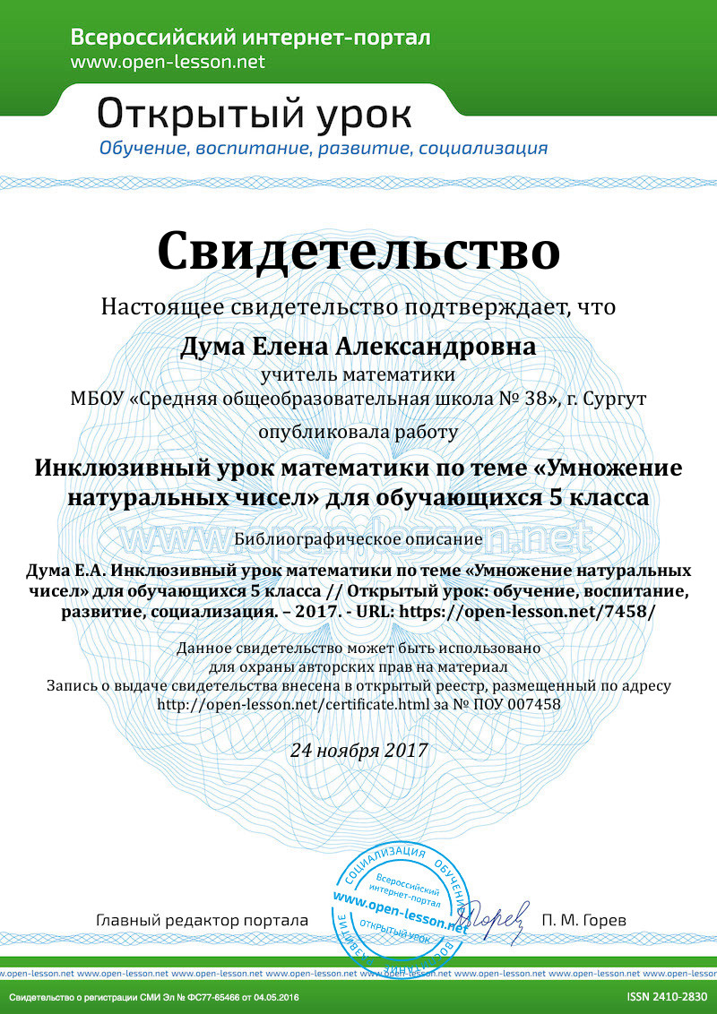 Цель: Усвоить правило умножения натуральных чисел и активно его использовать в различных упражнениях.