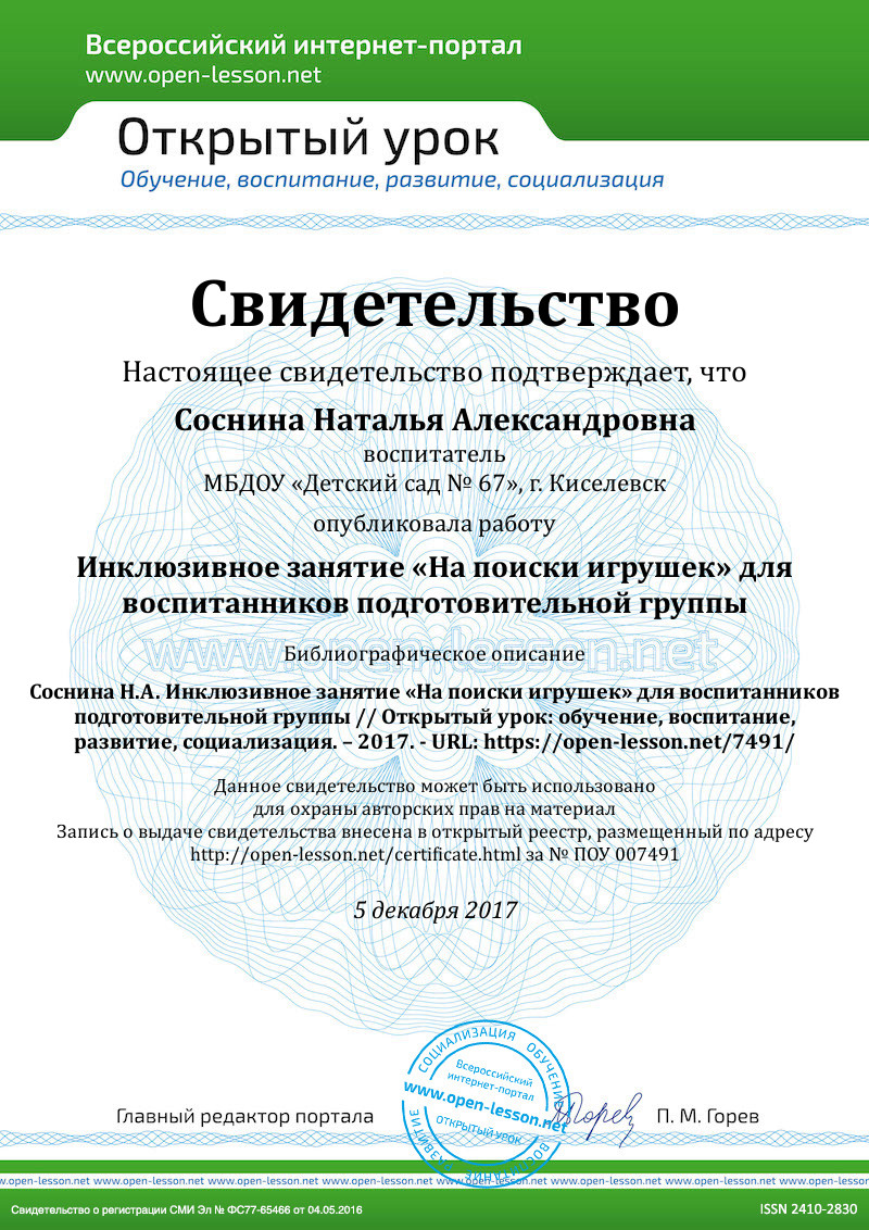 Инклюзивное образование является одним из приоритетов государственной образовательной политики России. Инклюзивное образование дает возможность детям с ограниченными возможностями здоровья учиться и развиваться в среде обычных дошкольников. При этом всем детям группы предоставляются равные условия для того, чтобы включиться в воспитательно-образовательный процесс [5]. Такой вид обучения в дошкольном образовательном учреждении делает возможным оказание необходимой коррекционно-педагогической и медико-социальной помощи большому количеству детей, обеспечить родителей консультативной поддержкой, а также подготовить подрастающие поколение к принятию человека с ограниченными возможностями. В ФГОС говорится о выравнивании стартовых возможностей выпускников дошкольных образовательных учреждений, в том числе и детей с ограниченными возможностями здоровья.