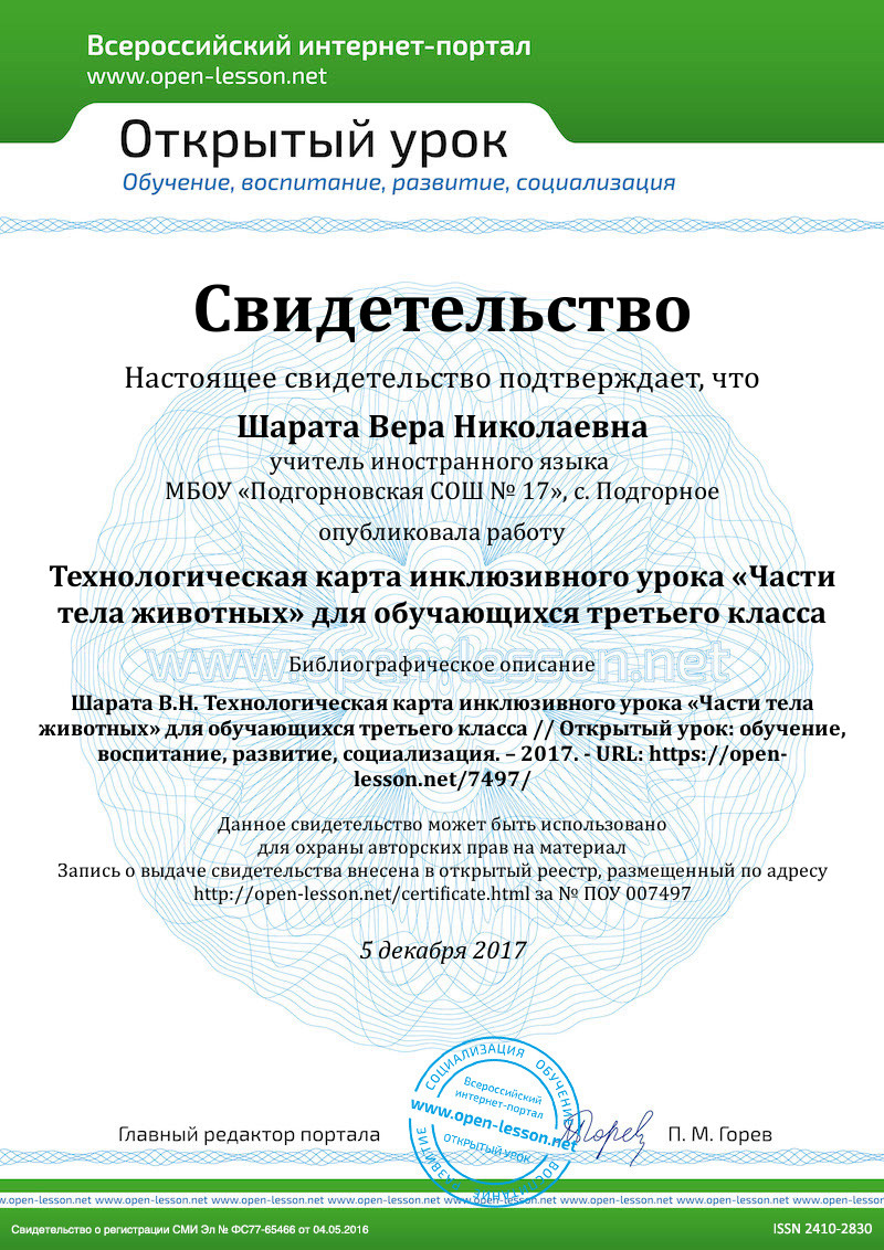 Совместное обучение детей, имеющих ОВЗ, вместе со здоровыми детьми позволяет им уверенно чувствовать себя, развивать необходимые знания, умения и навыки. В свою очередь, здоровые дети развивают доброту, отзывчивость, толерантность по отношению к «особенным» детям. Рассмотрим технологическую карту занятия для обучающихся третьих классов, направленного на формирование лексического навыка по теме «Части тела животных».