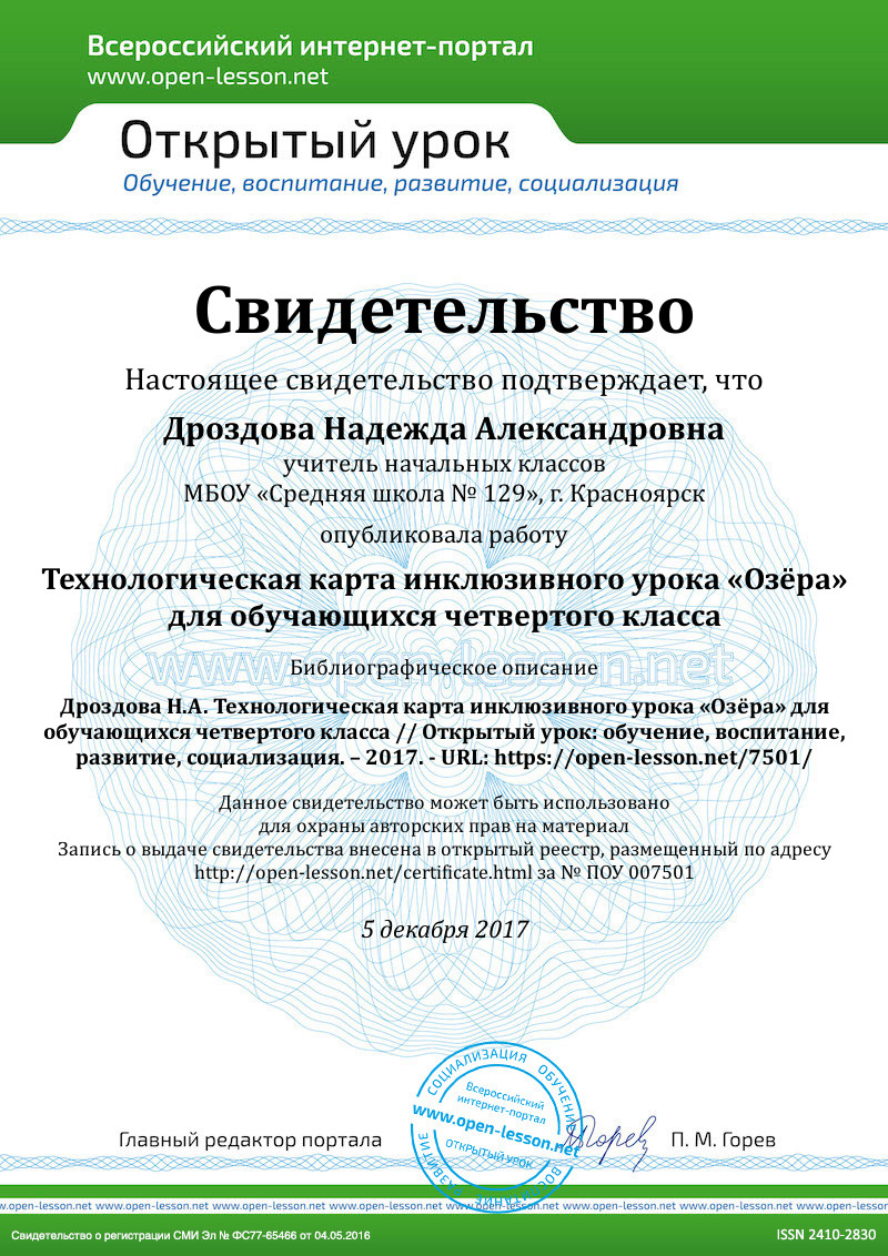 Технологическая карта инклюзивного урока «Озёра»