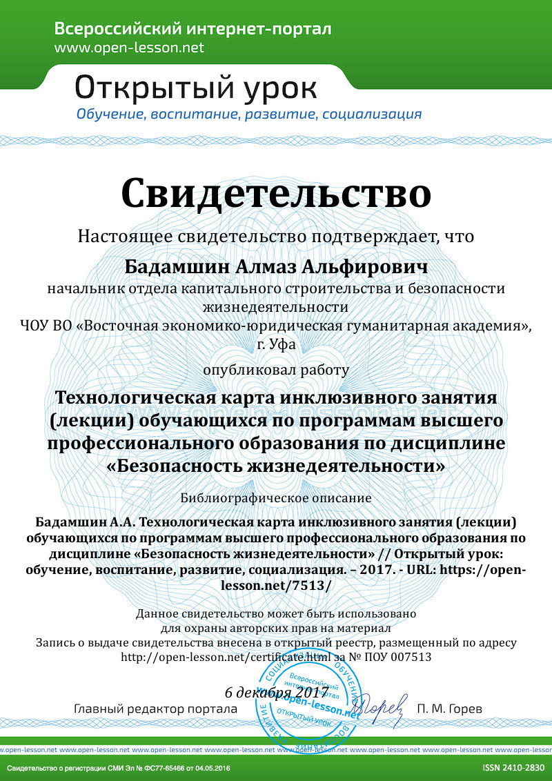 Представленная ниже технологическая карта занятия (лекции) ориентирована на обучающихся (в том числе, обучающихся с ОВЗ) по программам высшего профессионального образования по дисциплине «Безопасность жизнедеятельности».