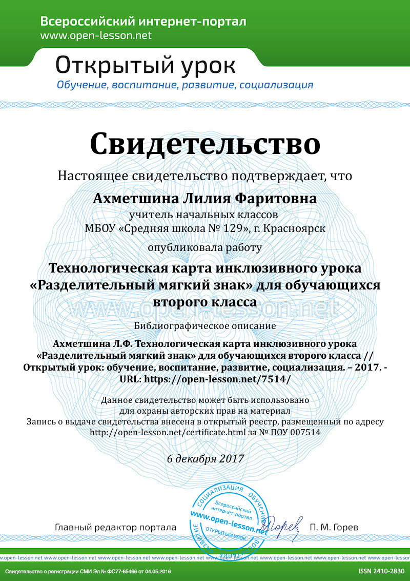 Технологическая карта инклюзивного урока «Разделительный мягкий знак»
