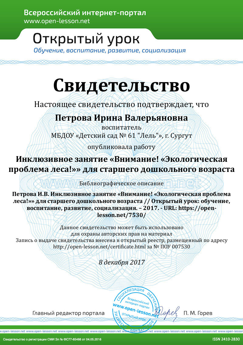 Демонстрационный материал: Презентация для занятия; Видео «Лесная рапсодия».