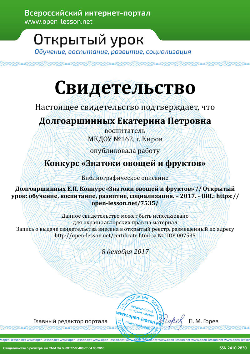 Начинаем конкурс «Знатоки овощей и фруктов»