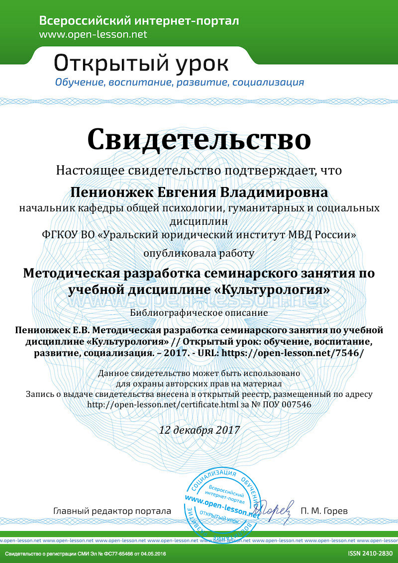 Методическая разработка подготовлена начальником кафедры общей психологии и гуманитарных дисциплин УрЮИ МВД России, кандидатом философских наук, доцентом Пенионжек Е.В