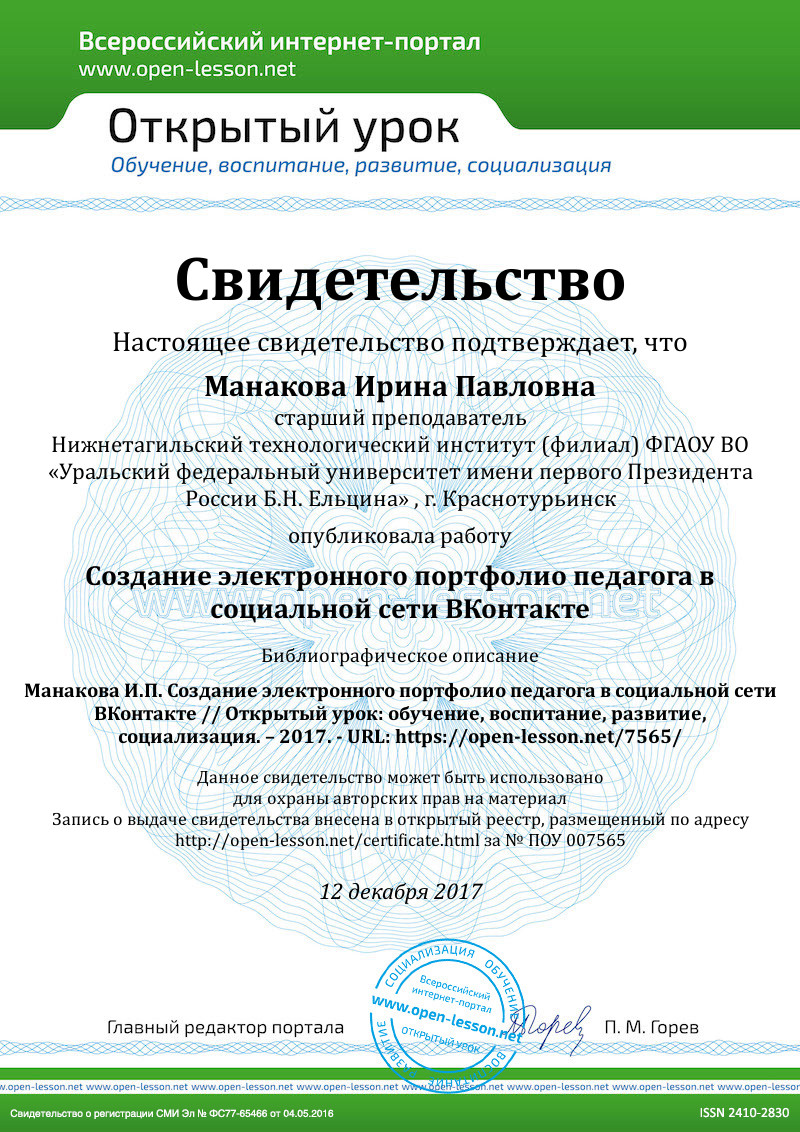 1. Технология портфолио и ее применение в социальной сети ВКонтакте