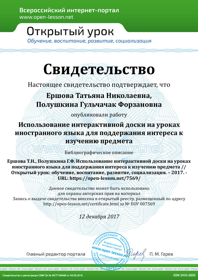 Образование сегодня – это динамичный процесс, требующий от учителя постоянного совершенствования и повышения квалификации. На смену книг на бумажном носителе пришли электронные книги, на смену мела-маркеры и интерактивные доски. Последние помогают лучше усвоить новый учебный материал и повысить мотивацию обучающихся при обучении иностранному языку. В основе ФГОС лежит системно-деятельностный подход, который обеспечивает формирование готовности к саморазвитию и непрерывному образованию, активную учебно-познавательную деятельность обучающихся [1, с. 472].Использование интерактивной доски делает образовательную деятельность эффективной на всех ее этапах. Интерактивная доска позволяет «всем обучающимся включиться в познавательную деятельность, способствует экономии времени на уроке, предоставляет наглядность, осуществляет обратную связь, вносит новизну в образовательную деятельность» [3]. Яркая схема, расположенная на экране интерактивной доски, для пояснения правила поможет объяснить любое сложное грамматическое явление. Дети тренируются и исправляют свои ошибки. Обучающиеся выводят правило, составляют таблицу или схему ответа и результат их работы можно распечатать на бумажный носитель. Тренировочные задания можно выполнять как индивидуально, так и в группе. Они являются важнейшим средством, способствующим достижению планируемых результатов образования. Задания можно дифференцировать по степени сложности [2, с. 7]. В классе, где много детей с низкой мотивацией, упражнения на интерактивной доске сделают урок интереснее, учебный материал доступнее. Интерактивная доска – это современное средство обучения, помогающее составить более полную картину того или иного события, проанализировать его и дать обдуманную оценку. Она развивает творческие способности школьников.