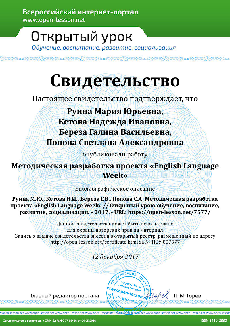 По своей структуре данный проект представляет собой комплекс мероприятий, которые проводятся систематично в течение года, а также активизируются в рамках недели английского языка в общеобразовательной школе.