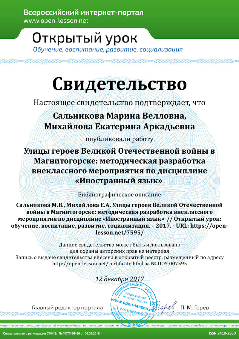 Тема: Улицы героев Великой Отечественной войны в Магнитогорске.