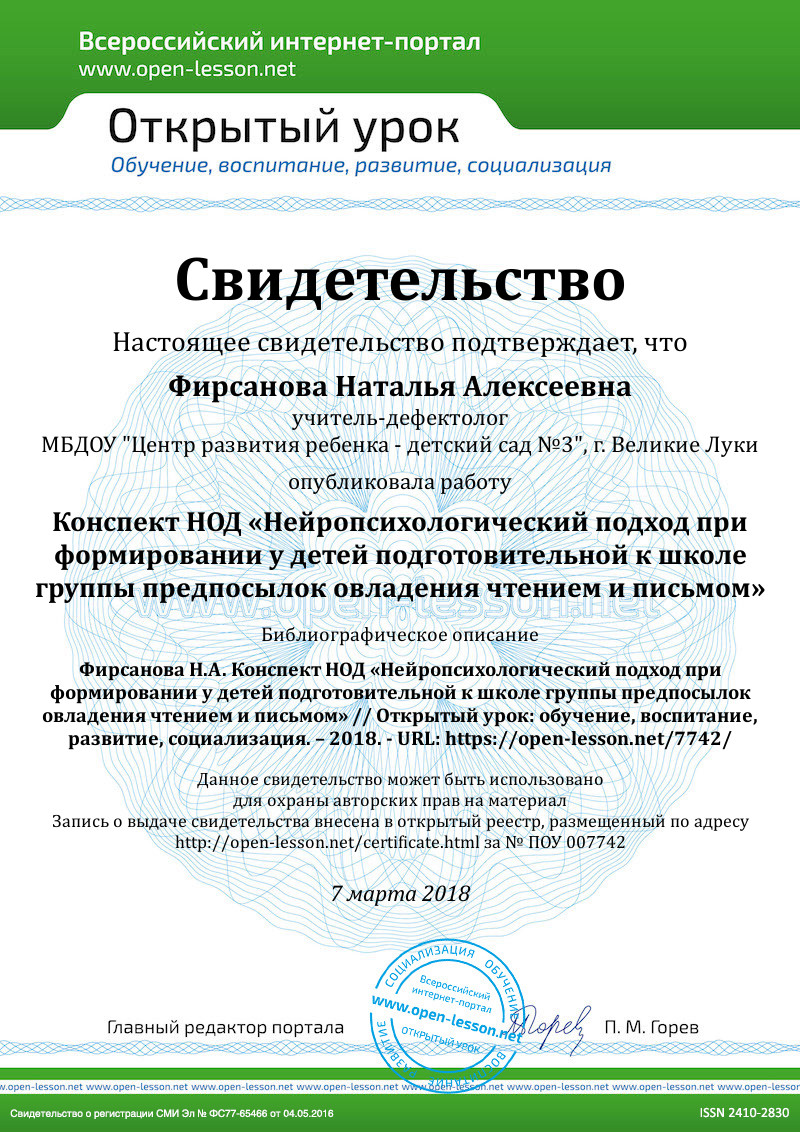 Цель: формировать предпосылки к овладению чтением и письмом у детей старшего дошкольного возраста, используя нейропсихологический подход.