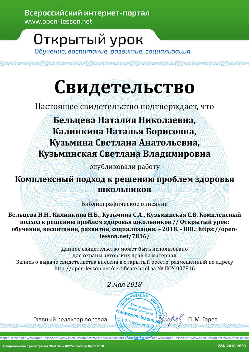 ВЕДУЩАЯ ИДЕЯ – комплексный подход к пониманию содержания здоровья и решению проблемы здоровьесбережения школьников.