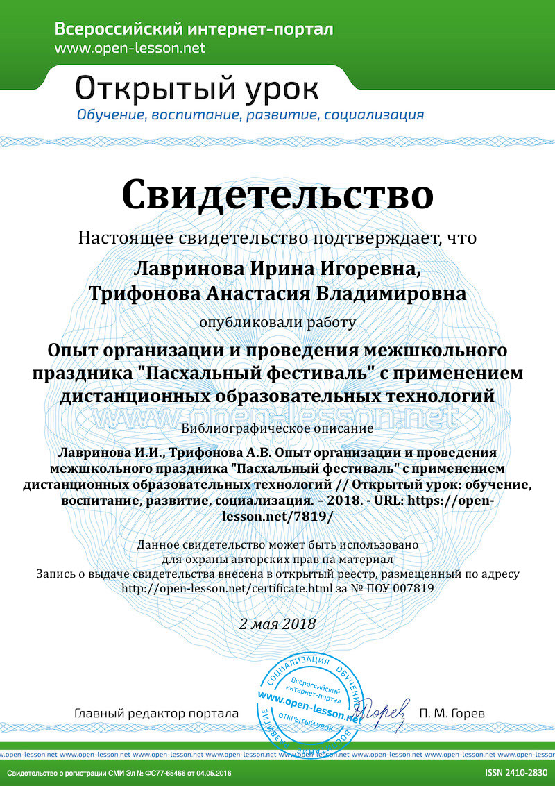 - разработана электронная площадка http://easter2017.eruditio.su/;