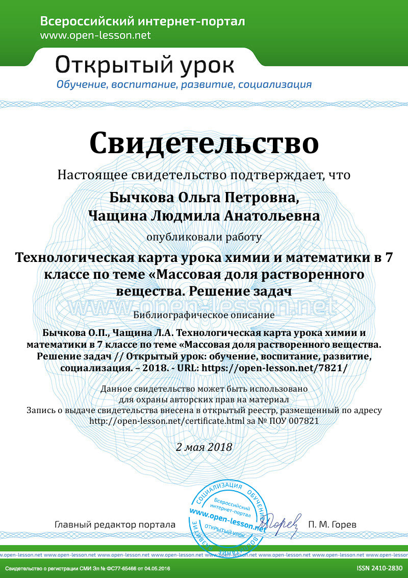 Знать понятия: процент, массовая доля вещества и концентрация вещества. |