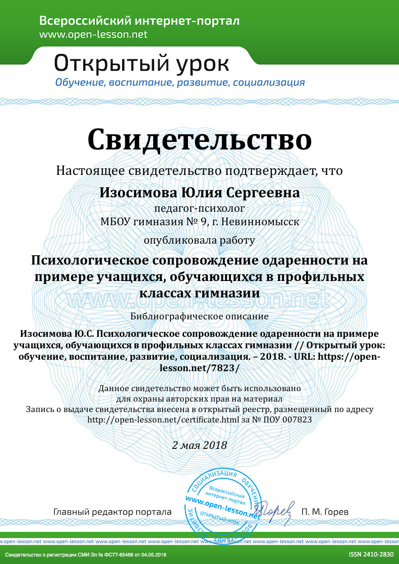 Раскрыть работу с одаренными детьми можно на примере психолого-педагогического сопровождения учащихся, обучающихся в профильных классах МБОУ гимназии № 9 города Невинномысска.
