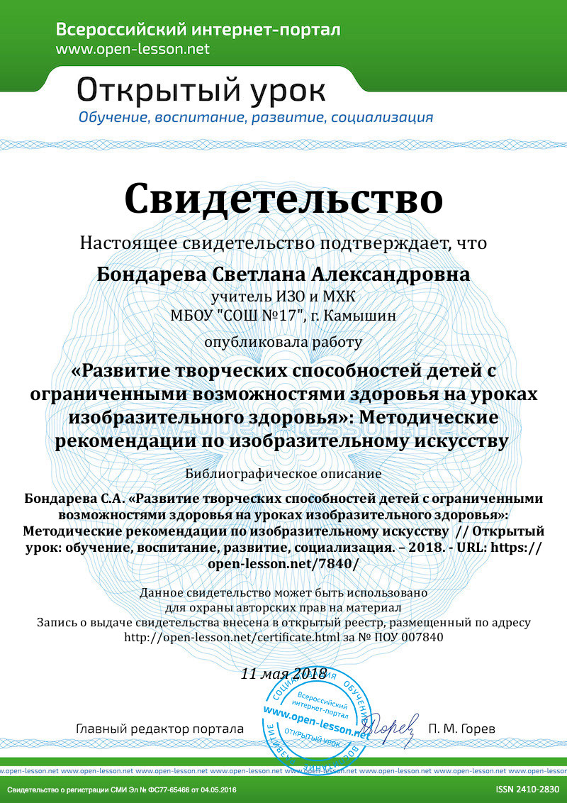 На сегодняшний день образование старается шагать в ногу со временем, учителя осваивают новые технологии и методы обучения, добиваются гарантированного результата. Появилась необходимость индивидуального подхода в развитие творческих способностей детей с ограниченными возможностями здоровья на уроках изобразительного искусства.