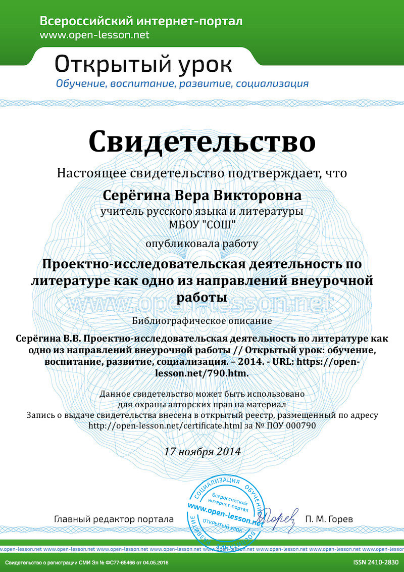 - Прищепа Е. М. «Ученическая исследовательская работа по литературе в гуманитарной профильной школе»//Литература в школе.-2004.№12. с.25-28