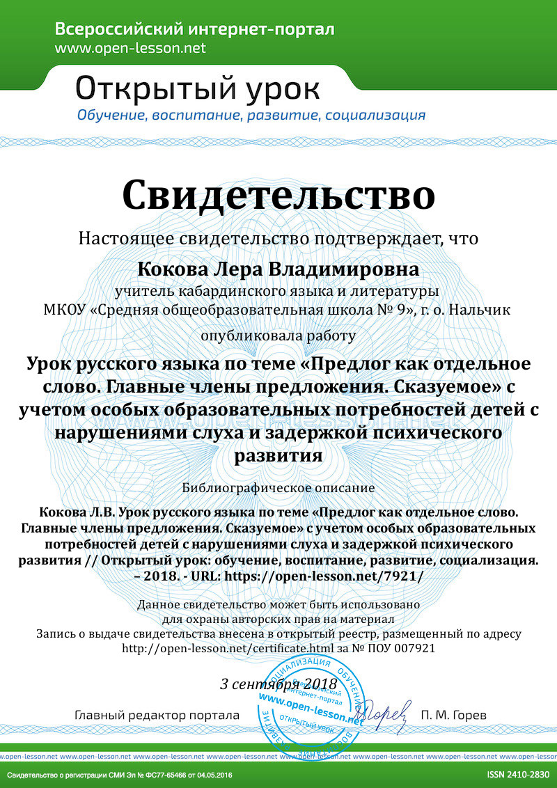 - Иванова Н. П. Конспект урока по русскому языку во 2–4 классе по адаптированной основной общеобразовательной программе для детей с ОВЗ // Педпортал.нет – https://pedportal.net/attachments/001/037/596/1037596.odt?1428793744=