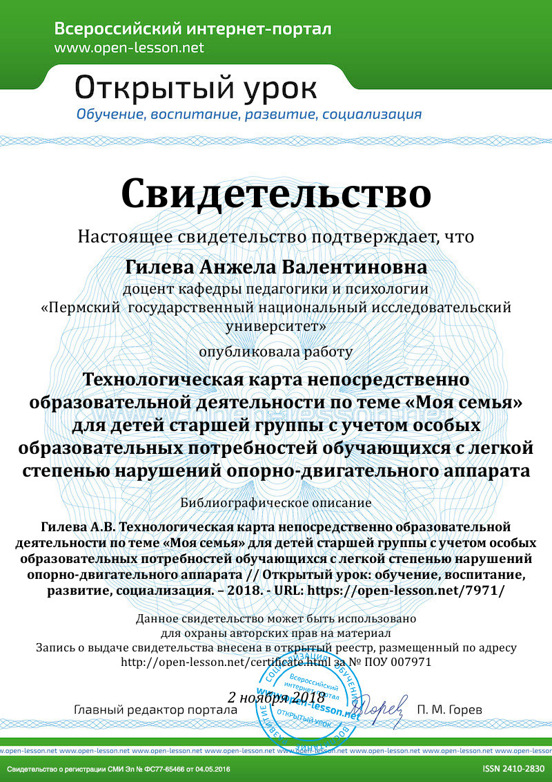 Проведение инклюзивного НОД по теме «Моя семья» для детей старшей группы детского сада, в состав которого входит 1 ребёнок с лёгкой степенью с нарушениями опорно-двигательного аппарата, не имеет принципиальных отличий от проведения обычного НОД. В ходе НОД не предполагается использование активных двигательных упражнений. Для обеспечения снятия усталости и утомляемости предусмотрено проведение физкультминутки, упражнения которой учитывают специфику здоровья ребенка с легкой степенью НОДА. Материал НОД способствует формированию у детей старшего дошкольного возраста толерантного отношения, терпения и сострадания к лицам с ОВЗ.