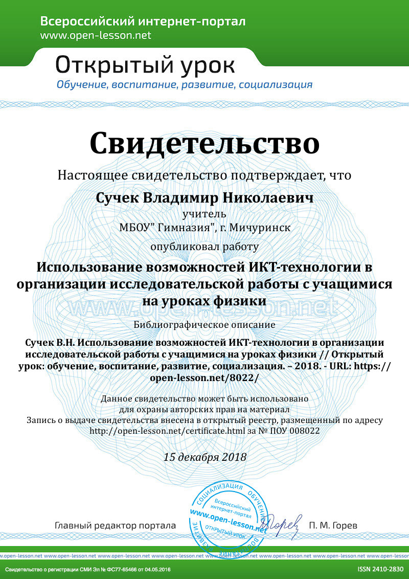 2. Бухольцева О.В. Исследовательская деятельность на уроках физики и во внеурочное время. [Электронный ресурс ] http://xn--i1abbnckbmcl9fb.xn.