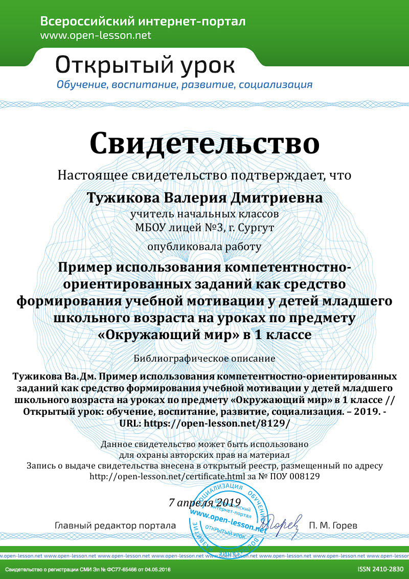 В связи с необходимостью формировать у детей младшего школьного возраста такой личностный образовательный результат как учебную мотивацию, что указано в Федеральном государственном образовательном стандарте начального общего образования [1], компетентностно-ориентированные задания можно использовать с этой целью.