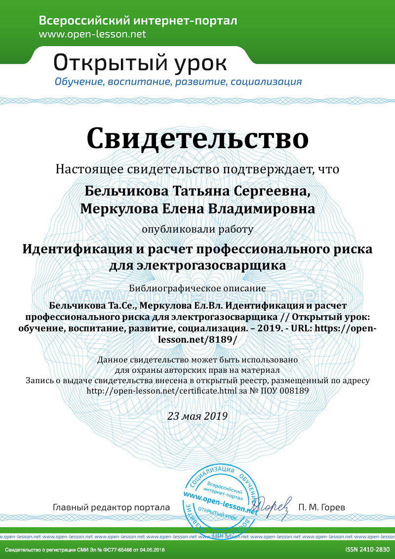 Изучение темы профессиональных рисков, одной из разновидности техногенных рисков, приобретает особую актуальность для нашей страны в свете экономической и внешнеполитической обстановки.