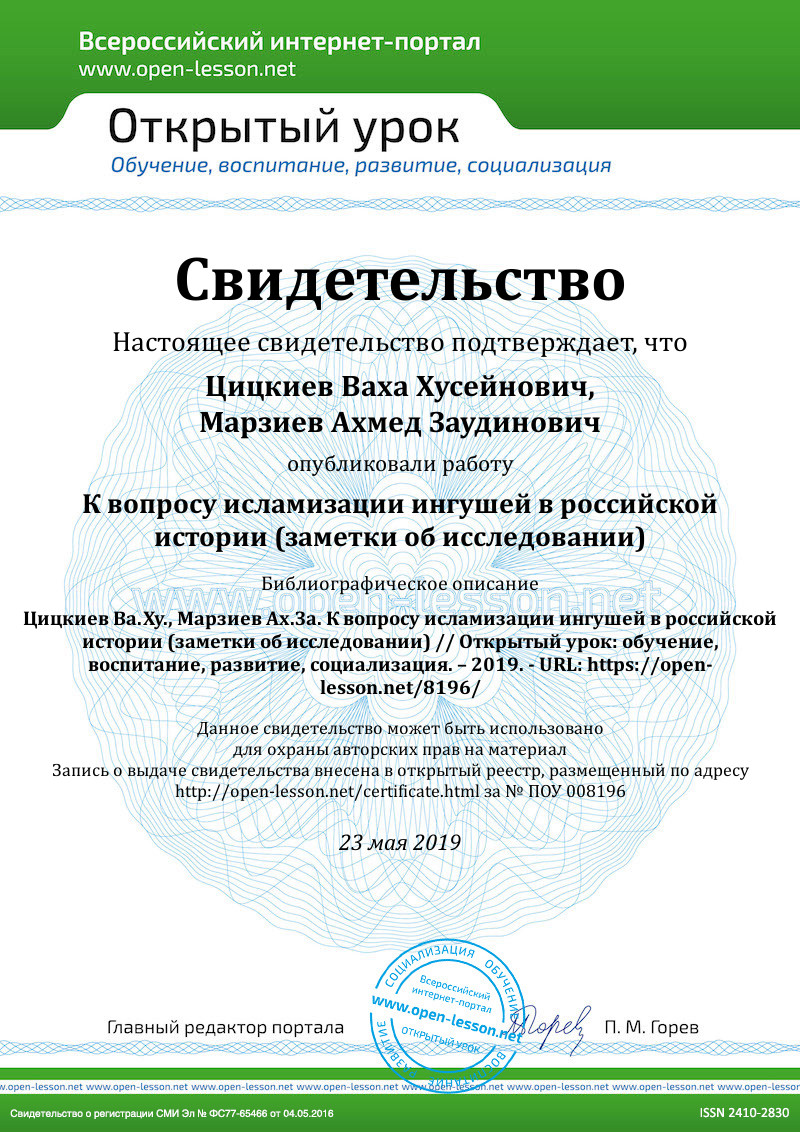 Возникает вопрос: когда же ислам проник в Ингушетию и в ингушское общество?
