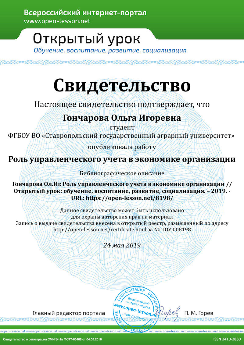 Таким образом, управленческий учет – это инструмент управления и неотъемлемая часть финансово-хозяйственной деятельности организации, который позволяет принимать оптимальные управленческие решения и повышать эффективность организации.