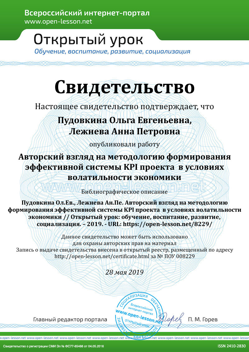 - Палаткина А. В., Степанова Н. И. Ошибки, возникающие при создании и внедрении системы ключевых показателей // Научный вестник Московского государственного технического университета гражданской авиации. 2012. № 181. С. 94–97.
