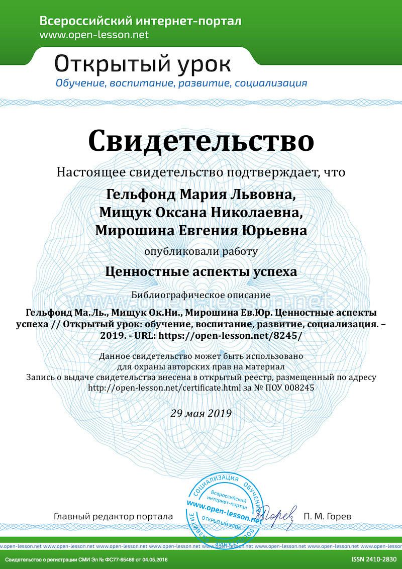 - Gelfond M.L., Mishchuk O.N., Miroshina E.Yu. Success as a philosophical category and a social phenomenon // Modern European Researches. 2018. № 4. С. 9-15.