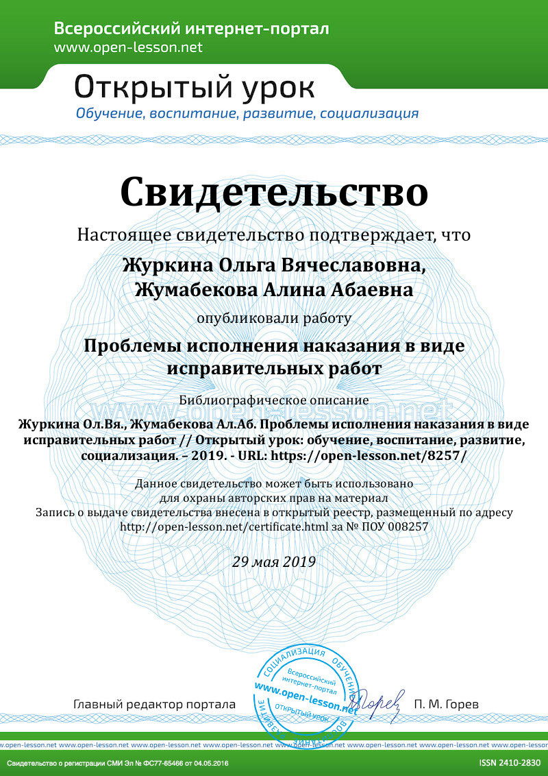Необходимо отметить, что отбывание исправительных работ неразрывно связано с трудовой деятельностью, то этот вид наказания не назначается нетрудоспособному гражданину [4]. Перечень ограничений за которые не назначается данный вид наказания содержится в ч.5 ст.50 УК РФ [1]. На мой взляд, в этот список необходимо включить лиц пенсионного возраста, потому что в соответствии с трудовым законодательством такие лица не обязаны трудиться, поэтому, к ним не нужно применять исправительные работы.