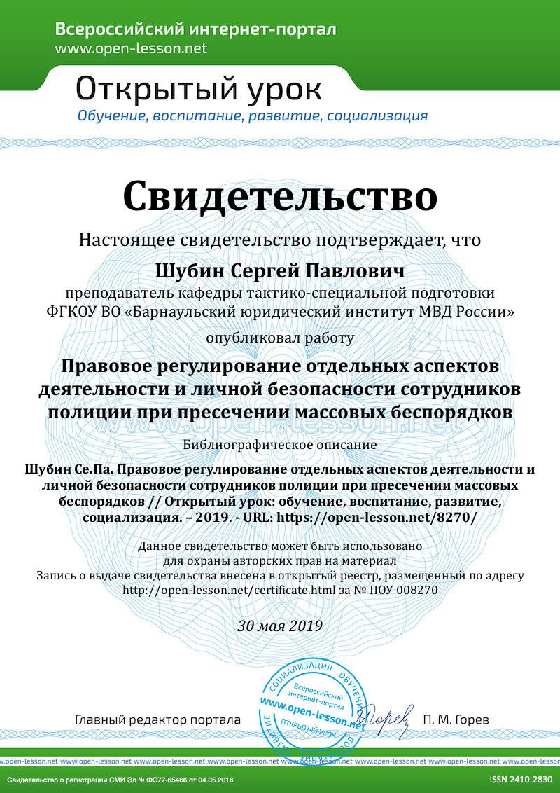 - Шубин С.П., Шатилов С.П. Процесс переговоров как основной этап специальной операции по освобождению заложников // Вестник Барнаульского юридического института МВД России. 2019. №2 (22). С. 162-163.