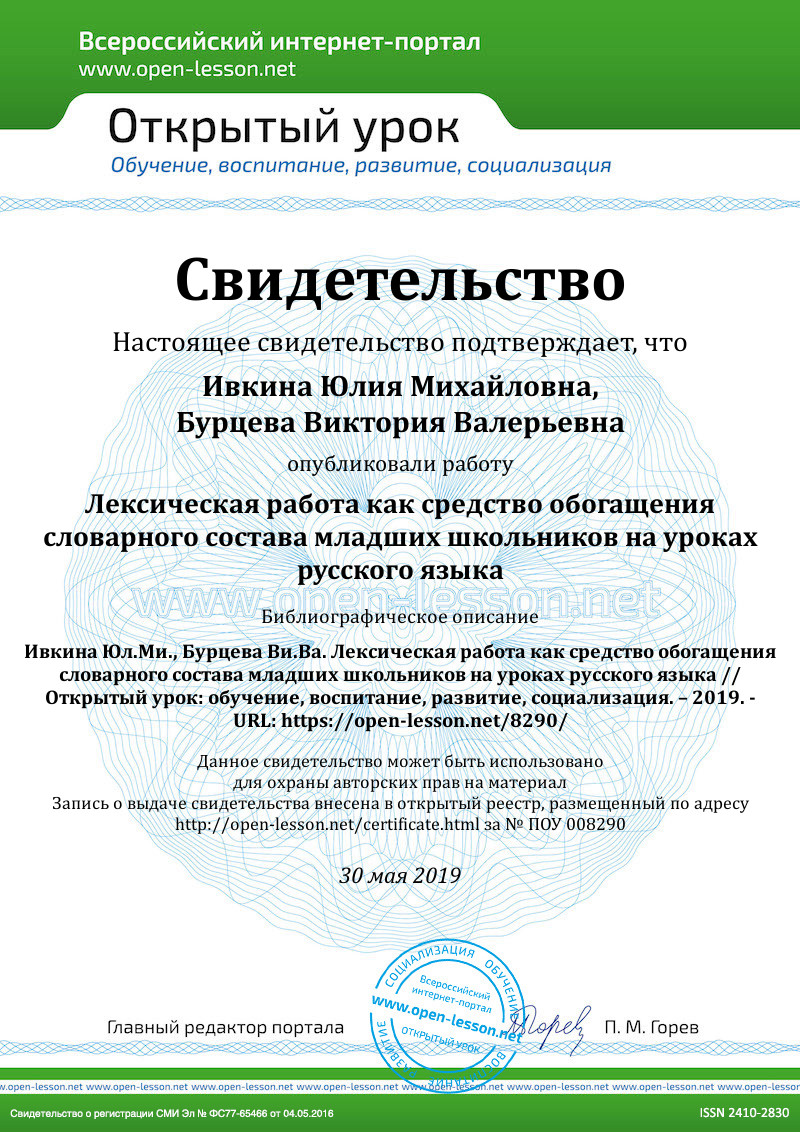 Таким образом, лексическая работа в школе способствует развитию лингвистического мышления детей, обогащению их словарного запаса, повышению речевой культуры. Для того чтобы дети умело использовали в речи слова, необходимо правильно организовать работу ними, применять различные виды упражнений и заданий в процессе обучения.