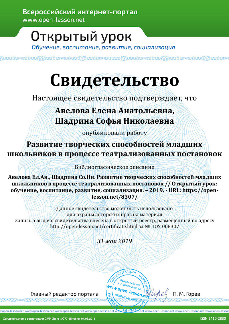 Мы можем сделать вывод: организация и реализация театрализованной игры в условиях школы, качественно и эффективно влияет на творческое развитие младших школьников.