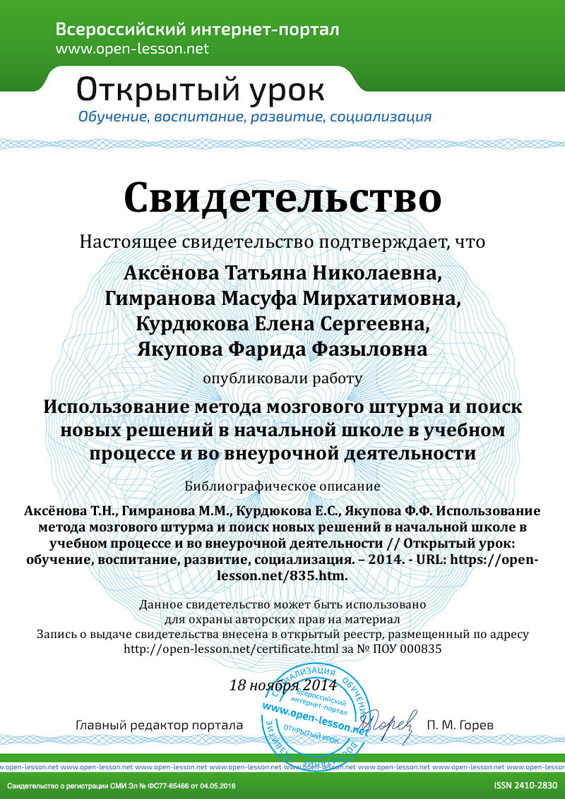Креативная педагогика не только является современной эффективной формой работы, но и помогает решать важные педагогические задачи: поддерживать высокую учебную мотивацию учеников, поощрять их активность и самостоятельность, расширять возможности обучения и самообучения, развивать навыки рефлексивной и оценочной деятельности учащихся, формировать умение учиться – ставить цели, планировать и организовывать собственную учебную деятельность. Проведённая в начальной школе работа, поможет ученикам не только в дальнейшем обучении, но и во взрослой жизни. Тем более что при разработке федеральных государственных стандартов второго поколения приоритетом начального общего образования становится деятельностно-ориентированное обучение, т. к. именно оно помогает решить задачу формирования универсальных учебных действий. А как показывает многолетний опыт зарубежных и российских школ, решить эту задачу можно именно через организацию различных методов в деятельностно-ориентированном обучении. Метод мозгового штурма эффективен и интересен, полезен и важен как для учителя, так и для учащихся начальной школы.