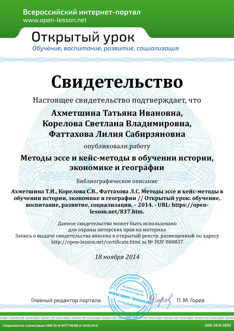 В этом как раз и состоит цель метода эссе – в развитии навыков самостоятельного творческого мышления и письменного изложения собственных мыслей. Писать эссе чрезвычайно полезно, поскольку это позволяет школьникам научиться четко и грамотно формулировать мысли, выделять причинно-следственные связи, структурировать информацию, использовать основные категории анализа, иллюстрировать понятия соответствующими примерами, аргументировать свои выводы; овладеть научным стилем речи. Эссе должно содержать: четкое изложение сути поставленной проблемы, включать самостоятельно проведенный анализ этой проблемы с использованием концепций и аналитического инструментария, рассматриваемого в рамках дисциплины, выводы, обобщающие авторскую позицию по поставленной проблеме. В зависимости от специфики учебного предмета формы эссе могут значительно дифференцироваться. В некоторых случаях это может быть анализ имеющихся статистических данных по изучаемой проблеме, анализ материалов из средств массовой информации и использованием изучаемых моделей, подробный разбор предложенной задачи с развернутыми мнениями, подбор и детальный анализ примеров, иллюстрирующих проблему и т. д. [3]. В статье будут предложены примеры использования эссе на уроках истории и экономики.